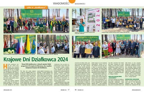 ● Chcecie być na bieżąco? Czytajcie „Wiadomości”! „Tylko w działkowcu” znajdziecie aktualne informacje na temat wydarzeń w Związku i w ogrodach! W tym numerze: „Krajowe Dni Działkowca 2024”, „Konkursy krajowe PZD rozstrzygnięte!”.