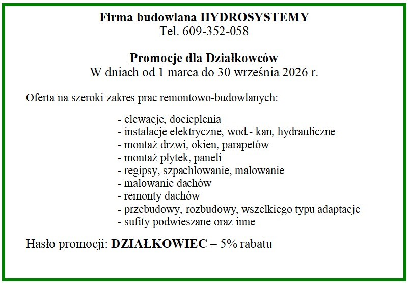Zarząd Okręgu nawiązał także współpracę z innymi firmami. Firmy te od lat z powodzeniem wykonują swoje usługi oraz dostarczają materiały na działkach ROD. Są one sprawdzone i rekomendowane, także zachęcamy do skorzystania.